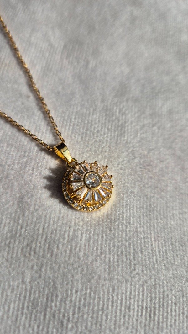 Este collar en acero quirúrgico, con su dije circular rodeado de destellos, es un recordatorio de que tu brillo propio siempre merece ser mostrado. Su diseño elegante y minimalista lo convierte en un accesorio versátil: perfecto para acompañarte en la rutina, en una salida especial o en esos momentos en los que querés sentirte única.